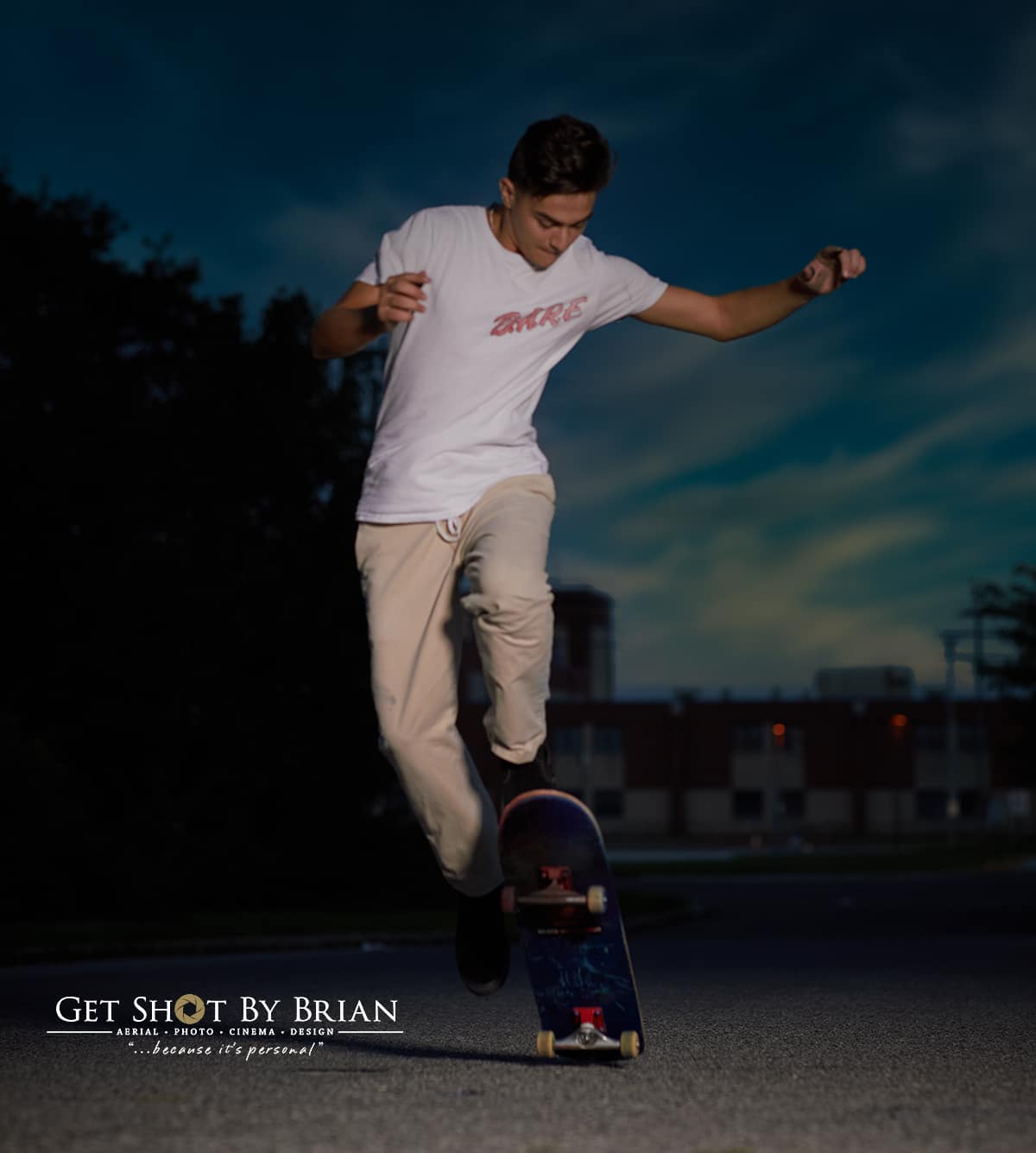 Well, This Was A First For Us! A High School Senior That LOVES To Skateboard! Evan Comes From Washington Township High School in Sewell, New Jersey. Evan Spends His Days Off At The Only Place That Clears His Mind, The Skate Park. If He Isn’t Hanging Out With Friends At The Skate Park, Evan Is Down The Shore At His Grandparents Shore House. He Is Always Been Active And Likes To Do Anything That Includes Being Outdoors (Fishing And Camping Are His Go- To’s). He Is Always Surrounded By Friends And Is The Life Of The Party! Evan Came To Our Studio Because He Saw Our Work On Social Media And Thought It Would Be Interesting In Combining Skateboarding With Amazing Graphics!