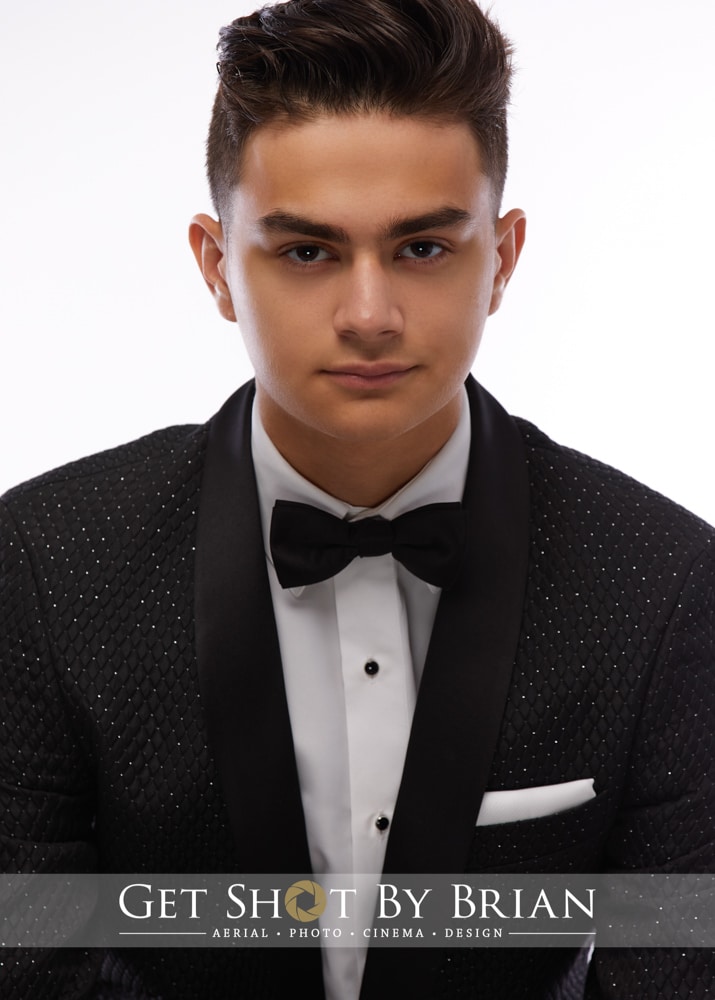 Now, Let’s Go Back To The Shoot! Of Course, We Start With The Cap And Gown, Also Known As The Most Tedious Photo That Any High School Senior Will Take. We Want To Make Sure The Photo Is Perfect With No Flaws! After This Traditional Photo Was Done, We Got Ready For The “Senior Experience” Photoshoot For Evan. Evan Most Certainly Bought His Skater “California Style” for his Shoot. Bringing A Combination Of Retro And Bright Colored Style Of Clothing. But When We Saw A Black Colored Rhinestone Tux, We Were All Amazed! We Were Also Shocked Because We Knew Evan Was A Skater, But We Didn’t Know He Had A Bit Of “Cover Of GQ Men Magazine” In Him. Our Photographer Brian Knew We Had To Start With The Tux First! It Looked So Clean And Put Together On Evan.