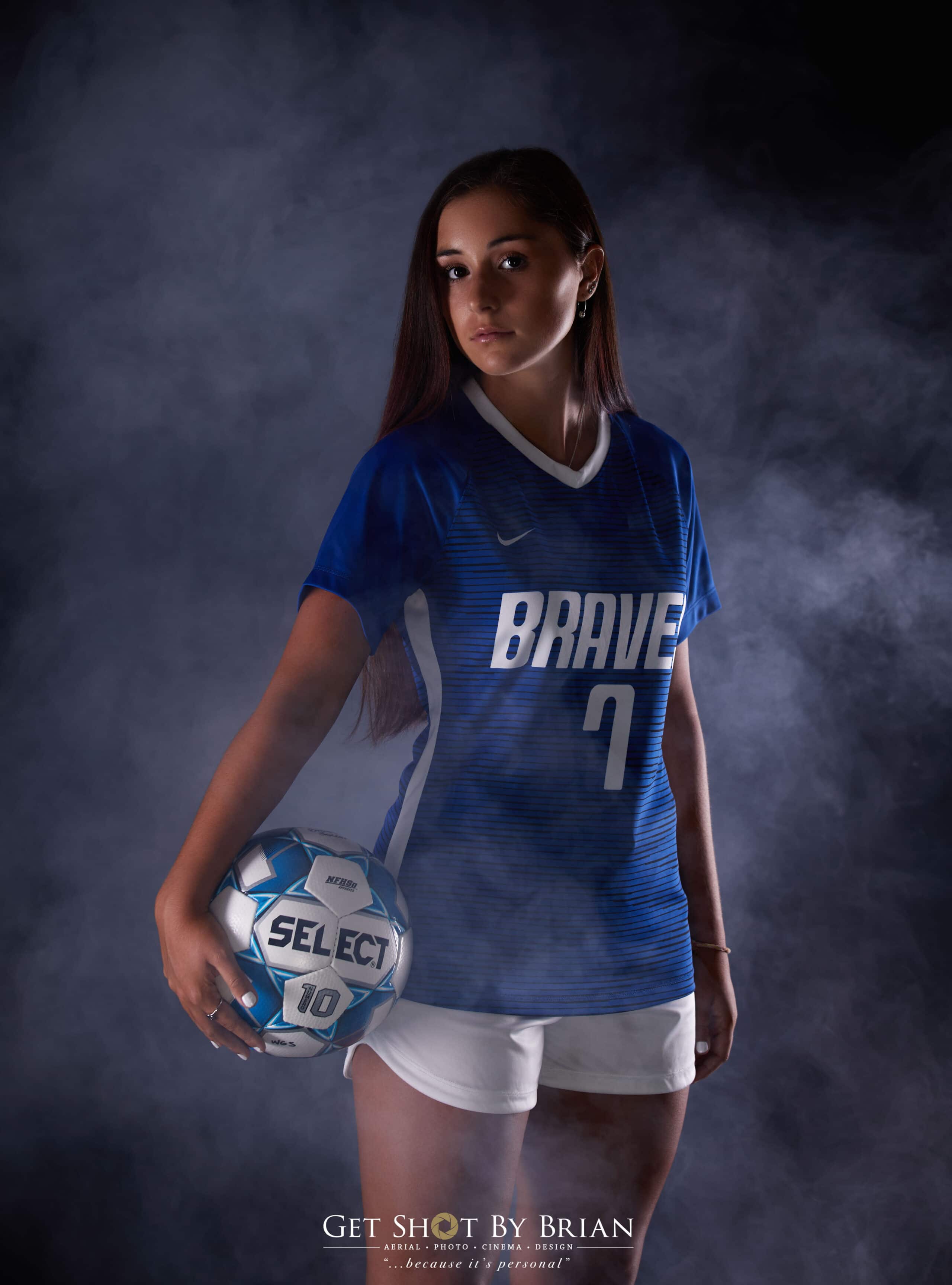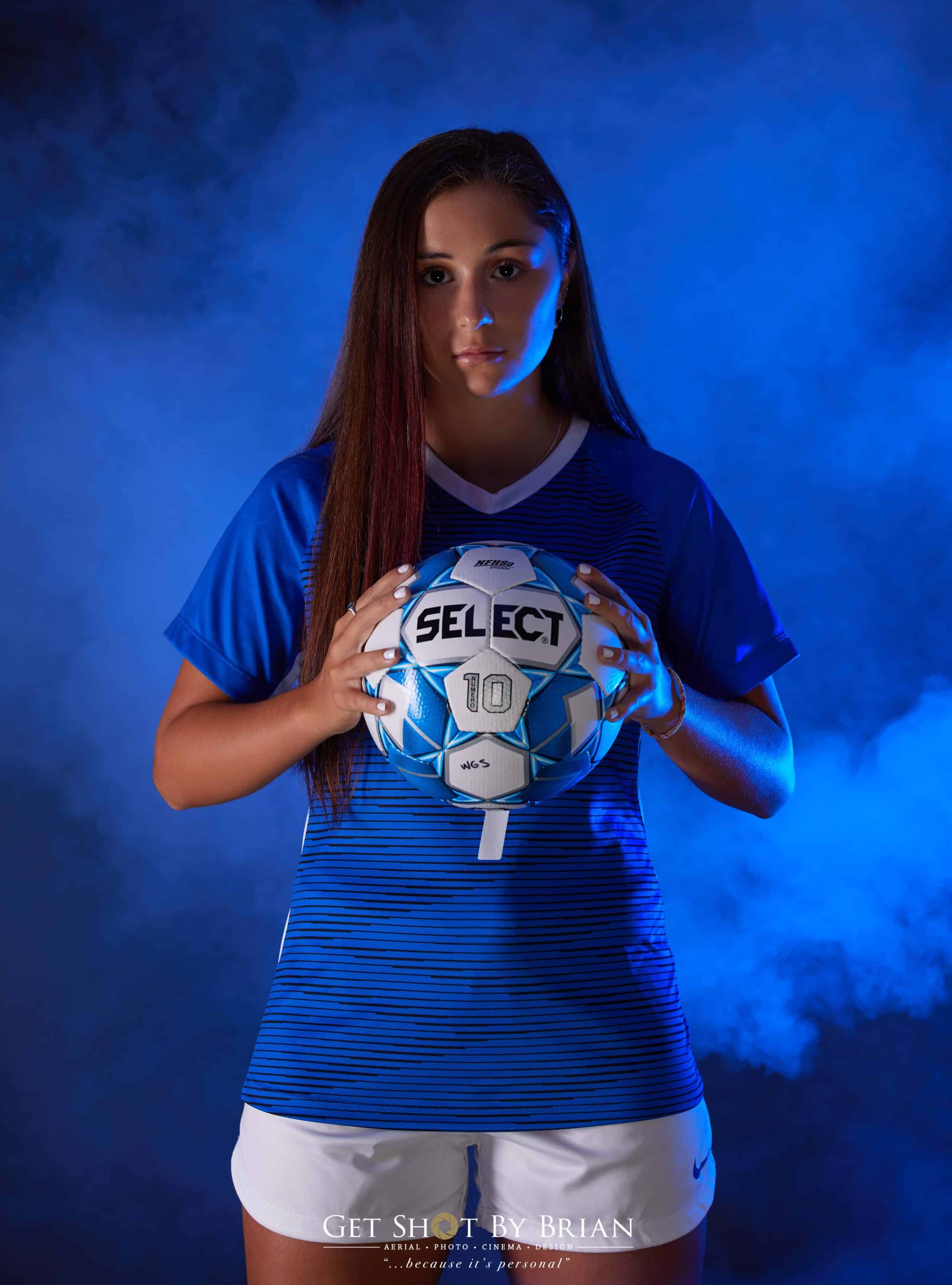 With Her Fashion Shots Done And Out Of The Way, We Then Began To Prepare For Her Soccer Look! Blue Lights And Smoke Really Brought Marisa’s Sports Vision To Life! Most Student-Athletes, We Have Had In The Past Were Involved In Multiple Sports; But Not Marisa! Soccer Has Always Been Her Focus; So, We Knew We Had To Make These Photos Special Just For Her!